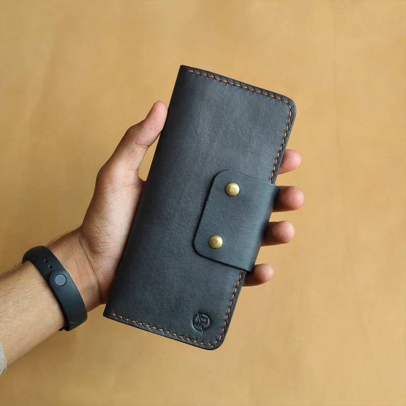 Cow Long wallet for someone who carries everything, cash, coins, cards, and receipts. Made with VEG Leather. Stitched with long-lasting imported thread. The wallet is further polished to give it a beautiful shiny finish.